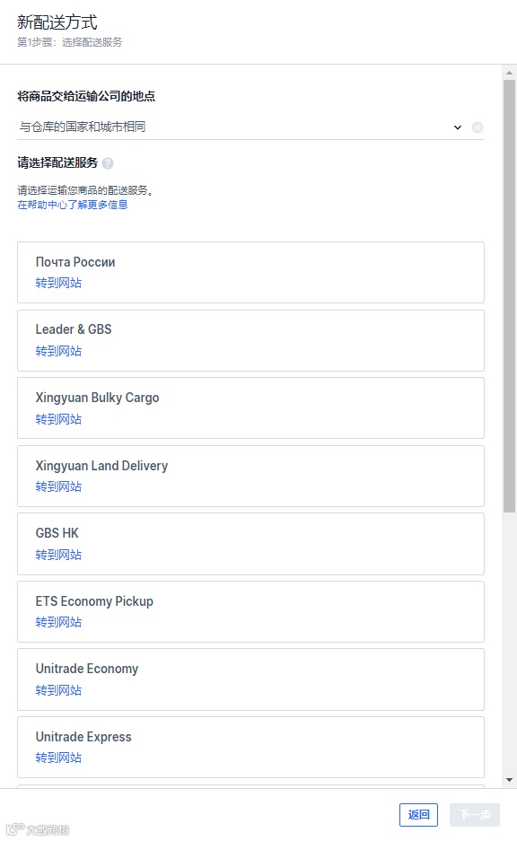 - 承运人地址:若物流公司当天取件,选择【与仓库城市和国家相同】;否则选择【其他】设置头程物流。