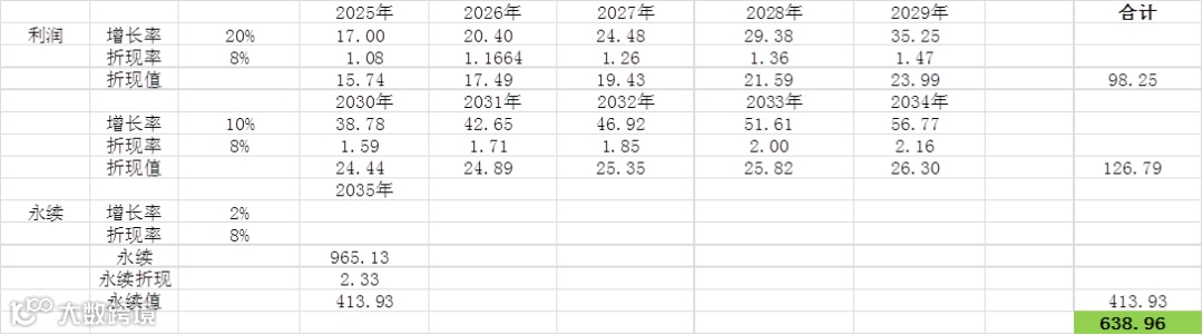 前5年增长率20%,后5年增长率10%,估算价值约640亿;有好收益还要看有更好的增长