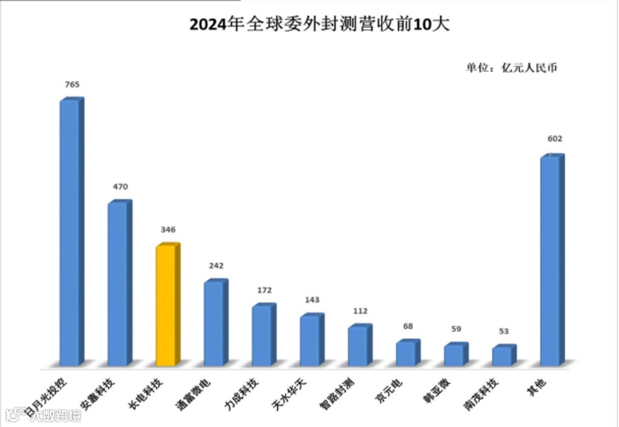 根据芯思想研究院(ChipInsights)发布的 2024 年全球委外封测(OSAT)榜单,长电科技以预估 346 亿元营收在全球前十大 OSAT 厂商中排名第三,中国大陆第一。公司在品牌领导力、多元化团队、国际化运营、技术能力、品质保障能力、生产规模、运营效率等方面占有明显领先优势。