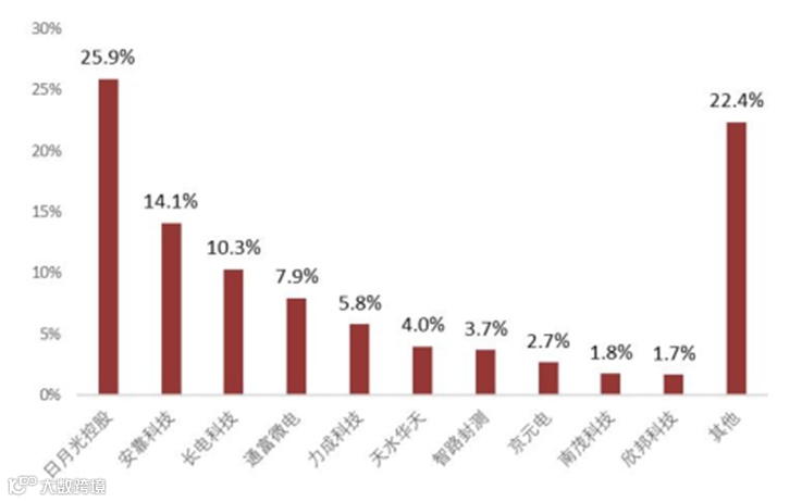 从近五年市场份额排名来看,行业龙头企业占据了主要的份额,其中前三大 OSAT 厂商依然把控半壁江山,市占率合计超过 50%。