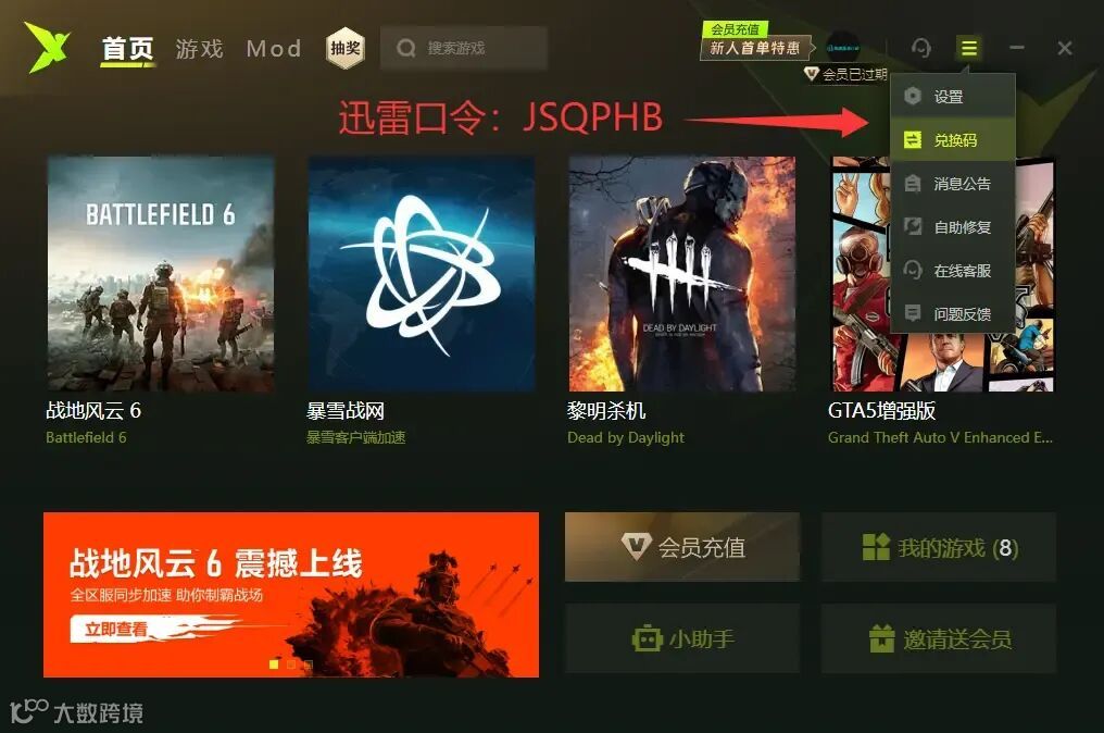 迅雷加速器口令码兑换教程:https://www.jsqphb.com/jiasu/53.html