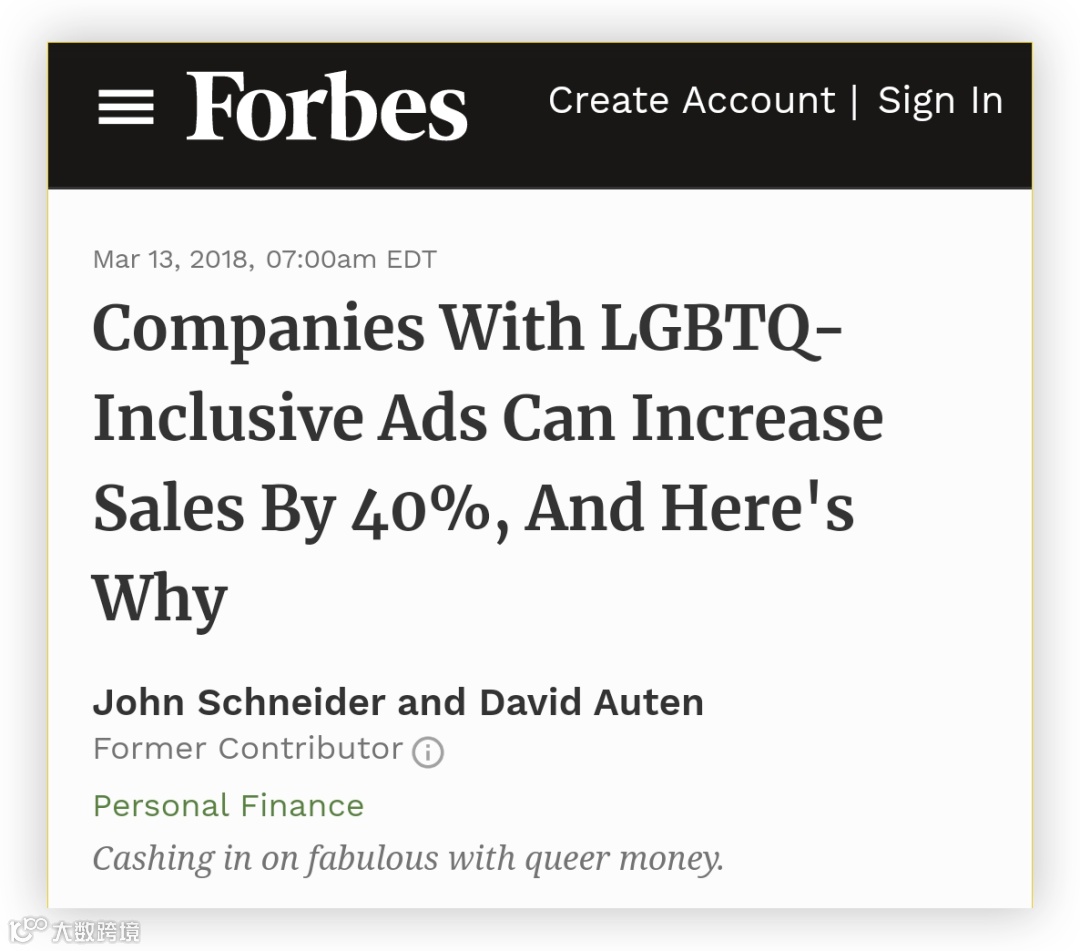 据福布斯数据,2015年全球酷儿群体购买力达3.7万亿美元。相关研究表明,62%的消费者会因同性恋主题广告访问商品页面,远高于普通广告的13%;在传播意愿方面,同性恋广告的分享率也显著高于平均水平[k]。