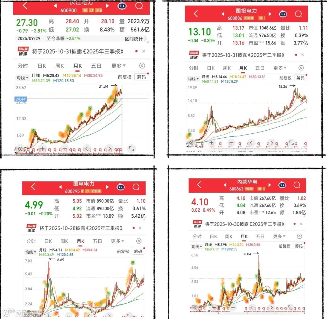 国电电力的月线就热闹多了,去年涨得猛,今年有所回调,1月涨了1.63%,但近5日又跌了0.8%,波动很大,这和它火电为主、业绩受煤价影响大的特点完全匹配。
