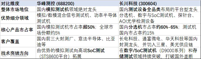 华峰测控(688200)、长川科技(300604)两个半导体测试设备公司的对比