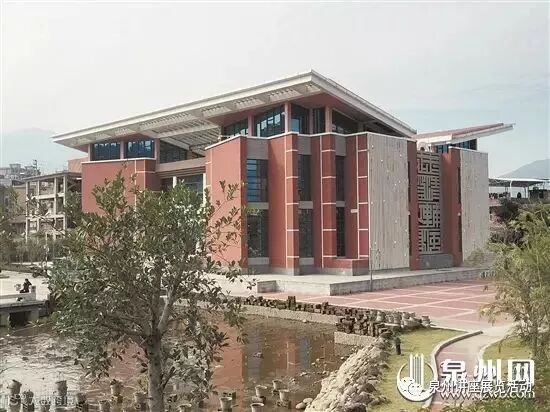 位于泉州市区西北侧,占地154.2亩,主体建筑面积23332平方米,采用了“天圆地方”的设计理念,运用闽台两地传统建筑“出砖入石”的特色工艺,红白相间,浑然天成,充分体现了海峡两岸的人文精神与地域特色。