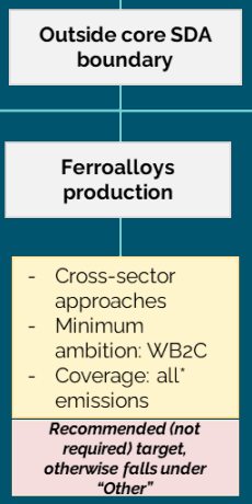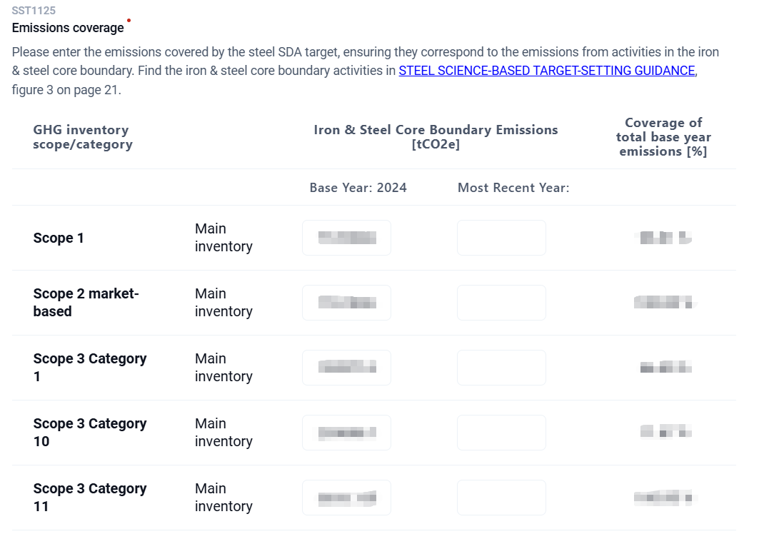 范围三 类别1 purchased goods and services(外购商品和服务排放):根据钢铁行业目标设置工具,该类别中 Ferroalloys production (铁合金生产)的排放不在SDA范围中,因此应剔除掉铁合金生产相关的排放量设定目标。