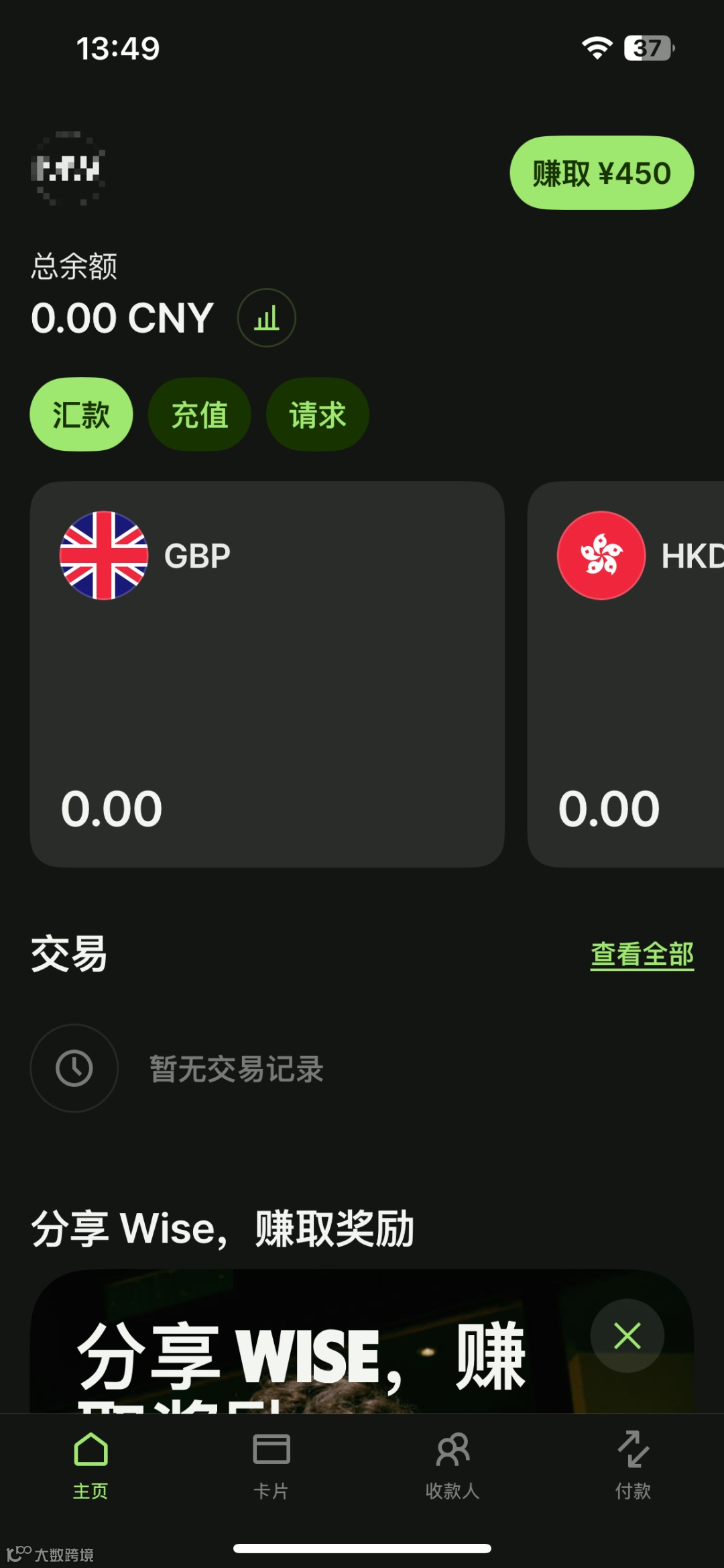 如何注册请各位网上自行解决,访问Wise官网就可以直接注册了,我们来说注册完成后如何入金和转账