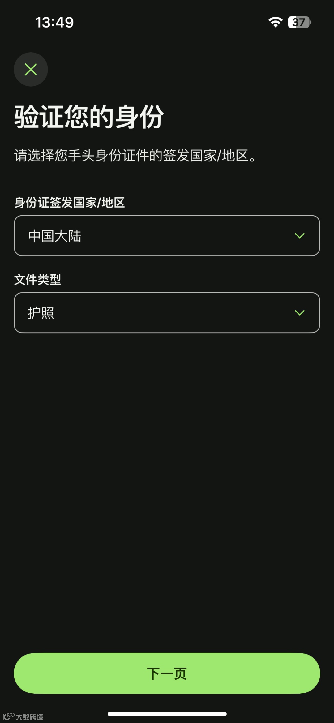 可以看到目前验证类型支持身份证了,但是如果你有护照请选择护照,不要使用身份证!!!