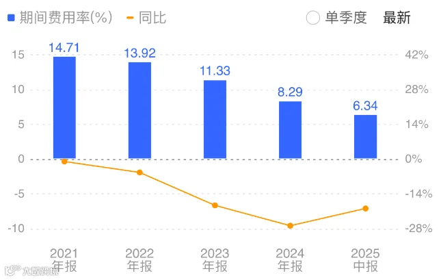 再看下期间费用率,期间费用率逐年下降,25年上半年降低到了6.34%,这说明公司期间费用增加远远低于销售收入的增速。这受益于行业向好,更说明公司的产品有很强的品牌效应。