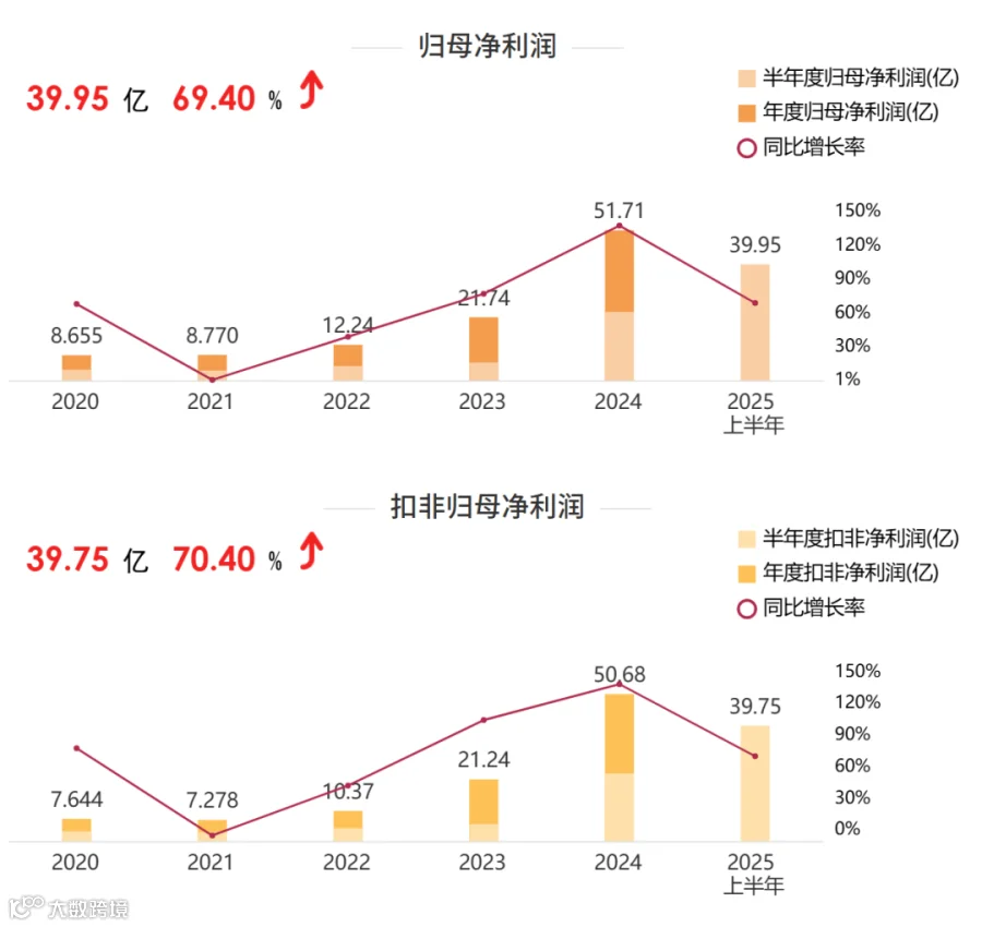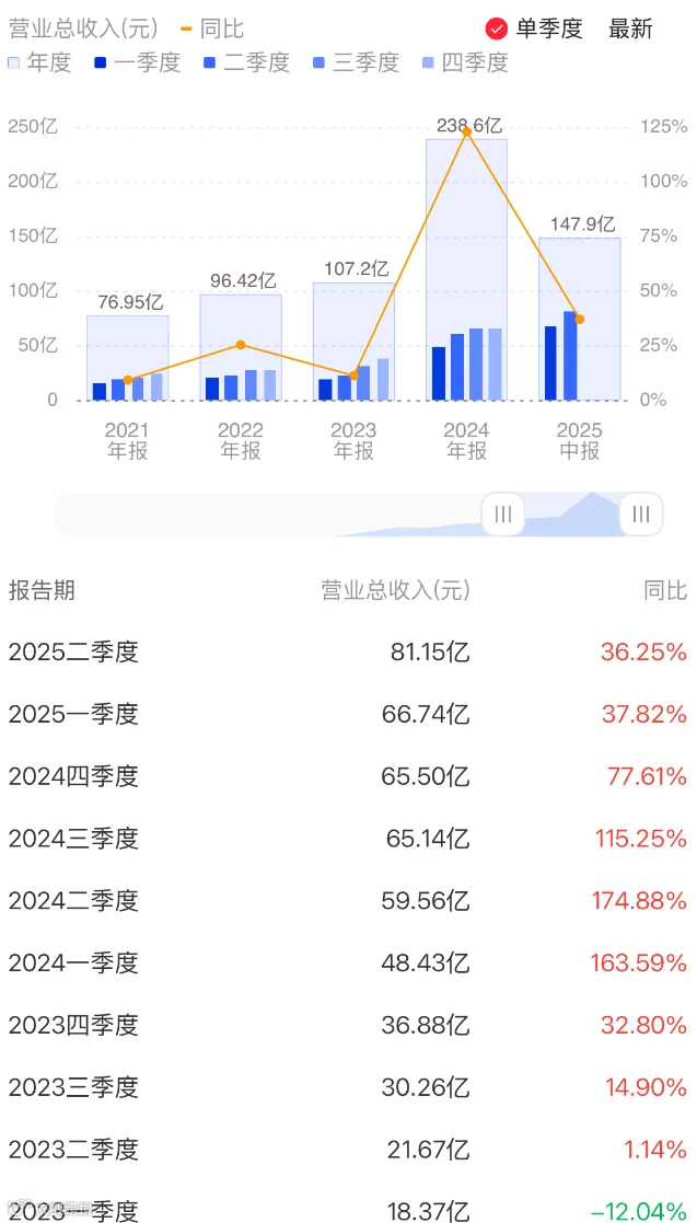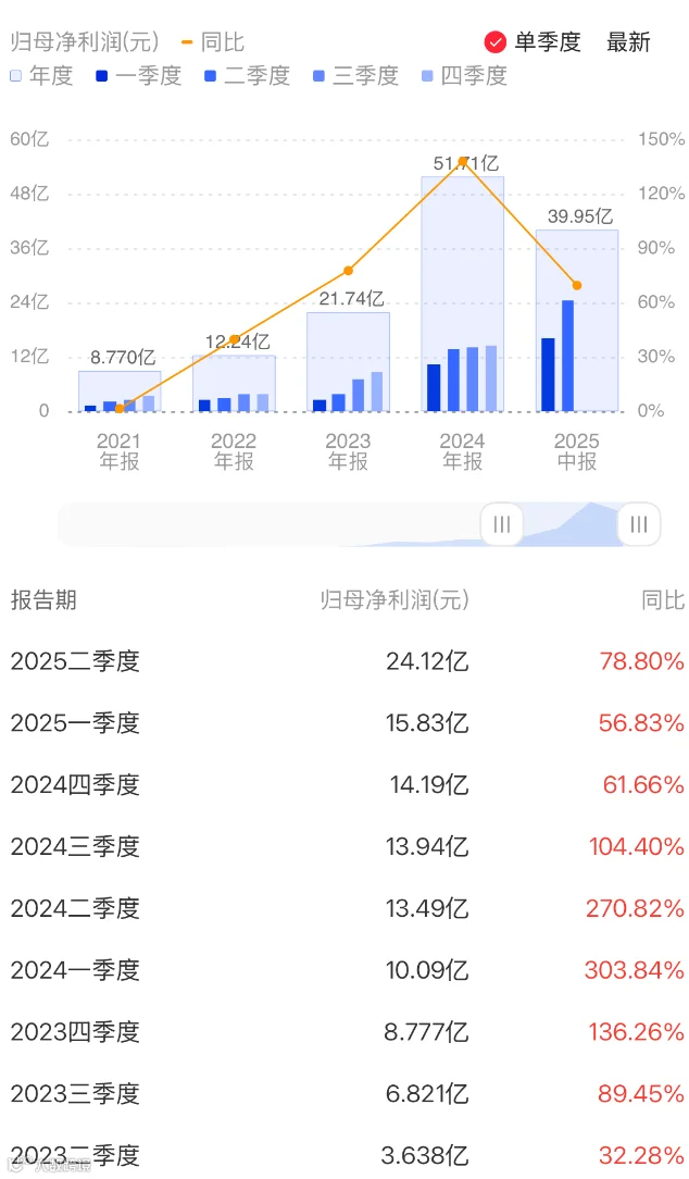 中际旭创2025年上半年的业绩报告令人瞩目。公司上半年实现营收147.89亿元,同比增长36.95%;归母净利润39.95亿元,同比大幅增长69.40%。