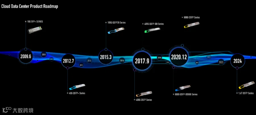 光模块的速率从早期的1G、10G,发展到现在的100G、400G,当前AI数据中心主流需求是800G,而下一代 1.6T 的光模块也已经呼之欲出。中际旭创正是全球800G光模块的领导者。