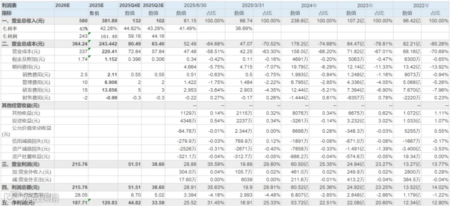 3季度业绩为33.6亿,4季度为44.8亿,全年净利润为120.8亿,26年净利润为187亿。