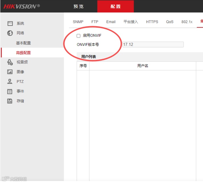 4.开启ONVIF功能并添加用户(步骤同浏览器方式)