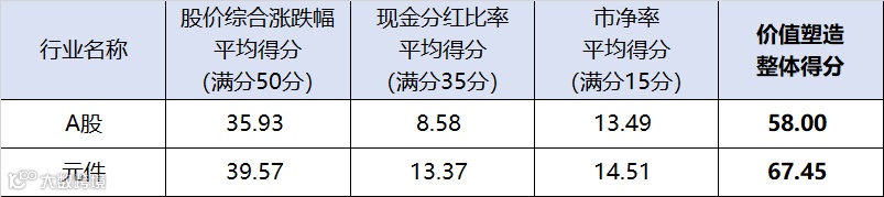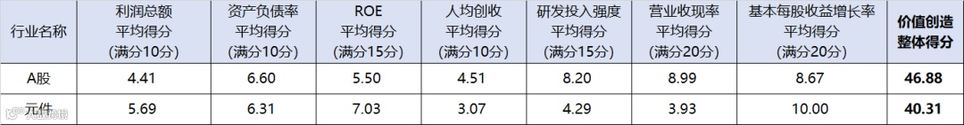 图:元件行业上市公司价值创造得分对比A股