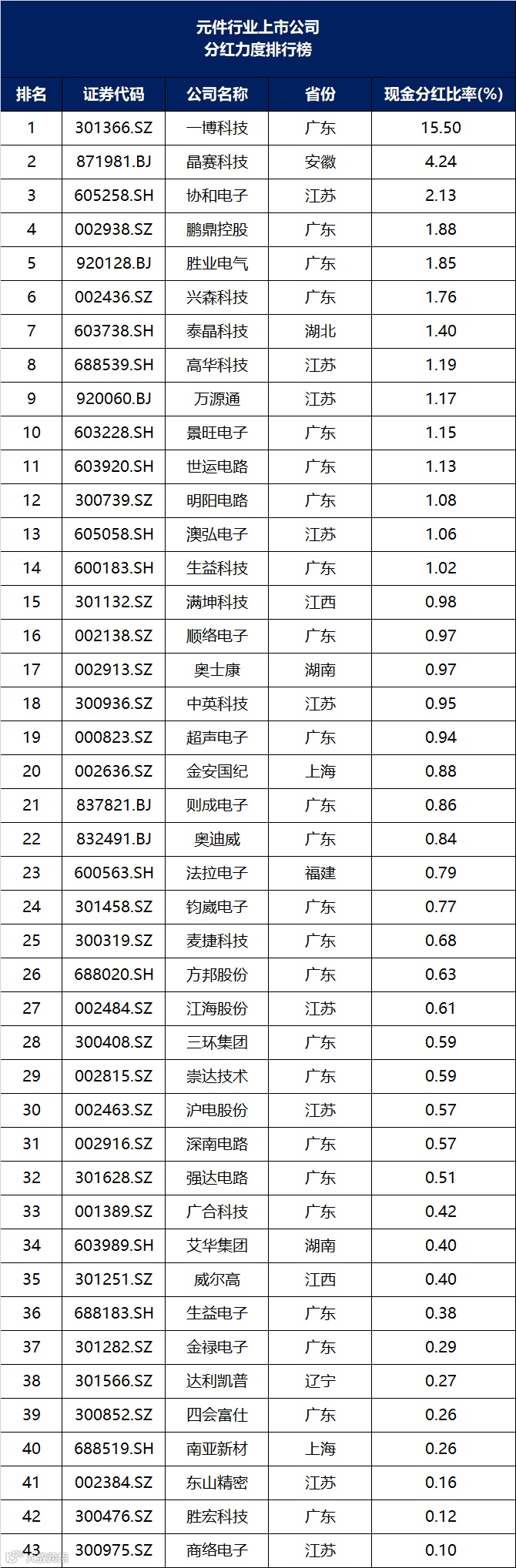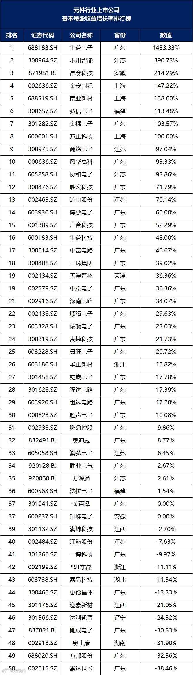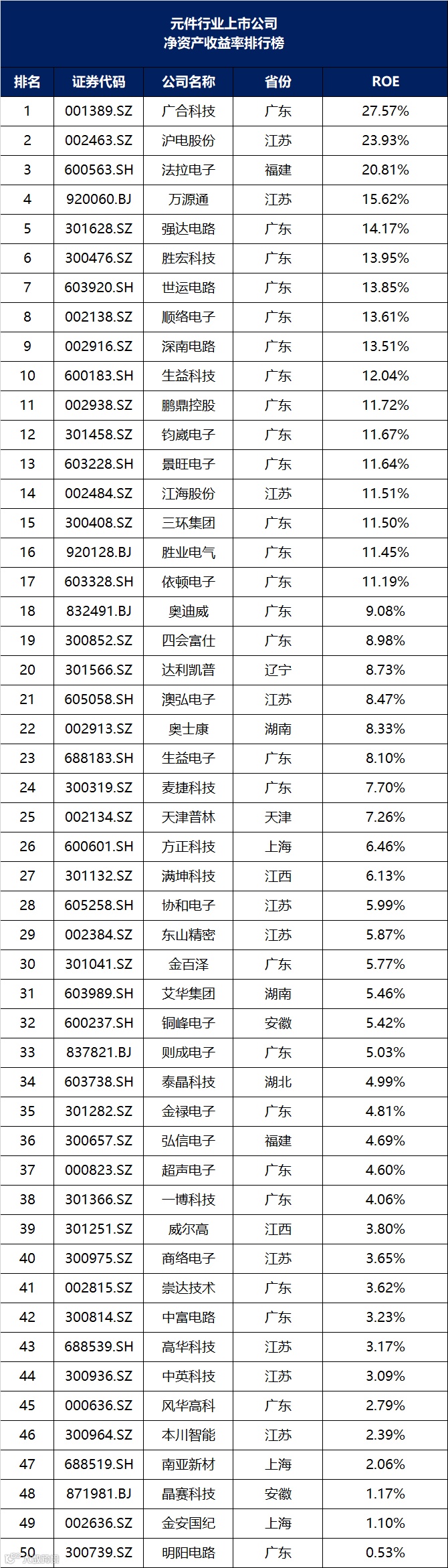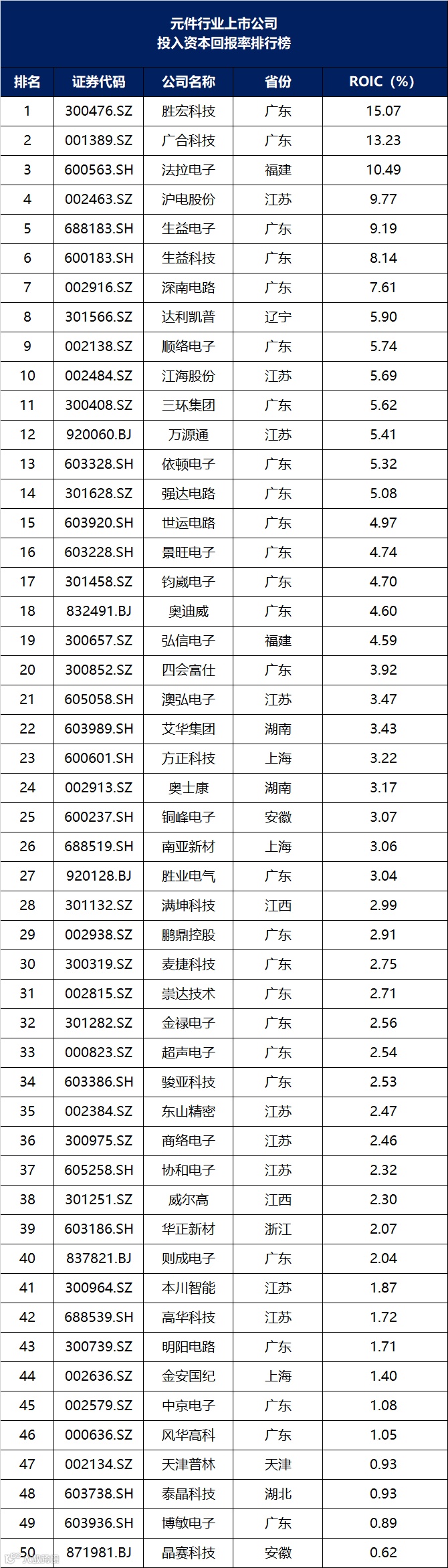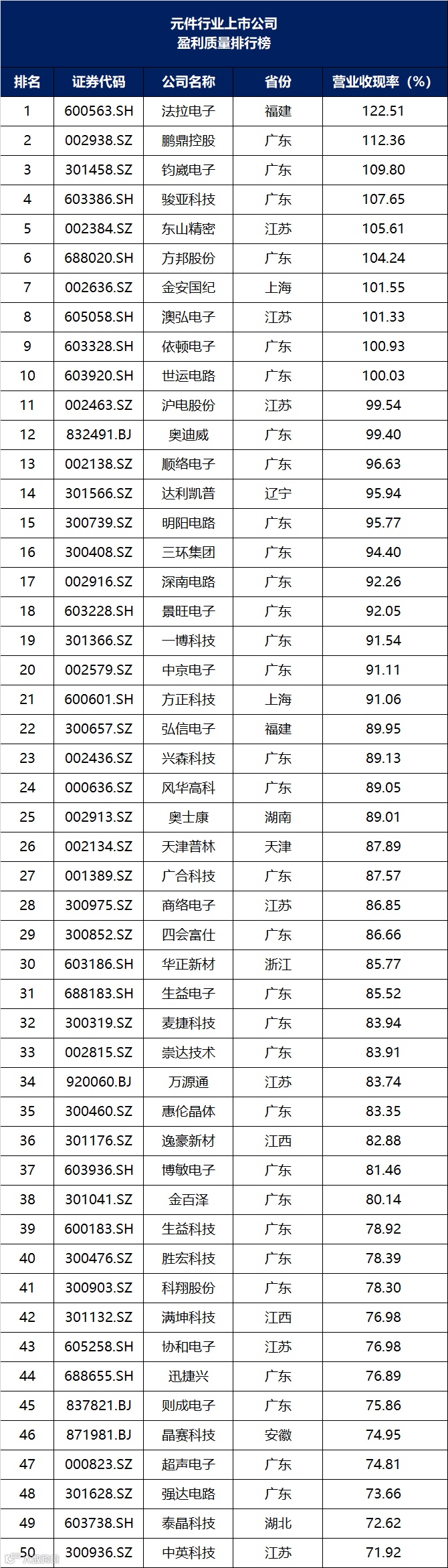 元件行业上市公司价值管理排行榜