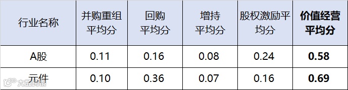 图:元件行业上市公司价值经营得分对比A股