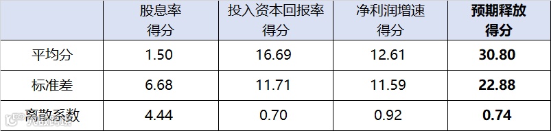 从分化的角度看,股息率得分离散系数高达4.44,行业上市公司间回报确定性分化显著。