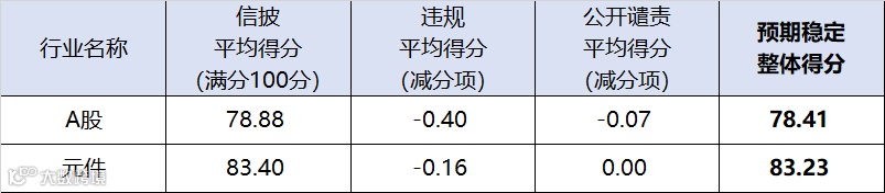 图:元件行业上市公司预期稳定得分对比A股