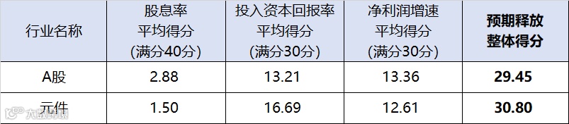 图:元件行业上市公司预期释放得分对比A股
