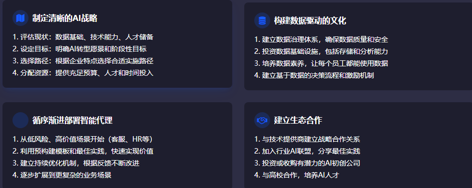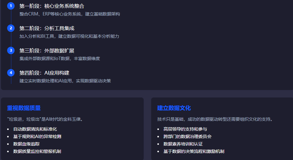 1.评估现状:全面评估企业的数据基础、技术能力、人才储备和文化 readiness