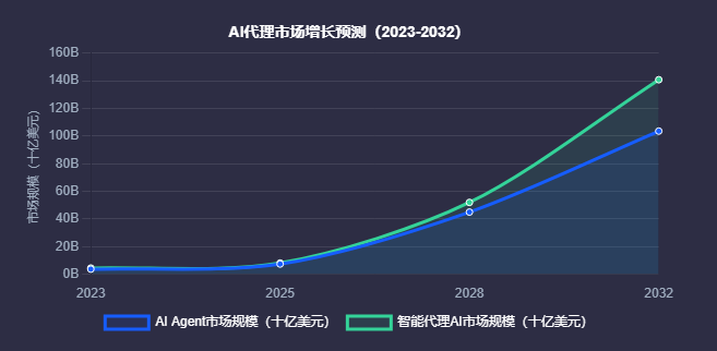 2.MarketsandMarkets 预测,智能代理 AI 市场将从 2025 年的 810 亿美元增长到 2032 年的1408 亿美元,年复合增长率为 39.3%