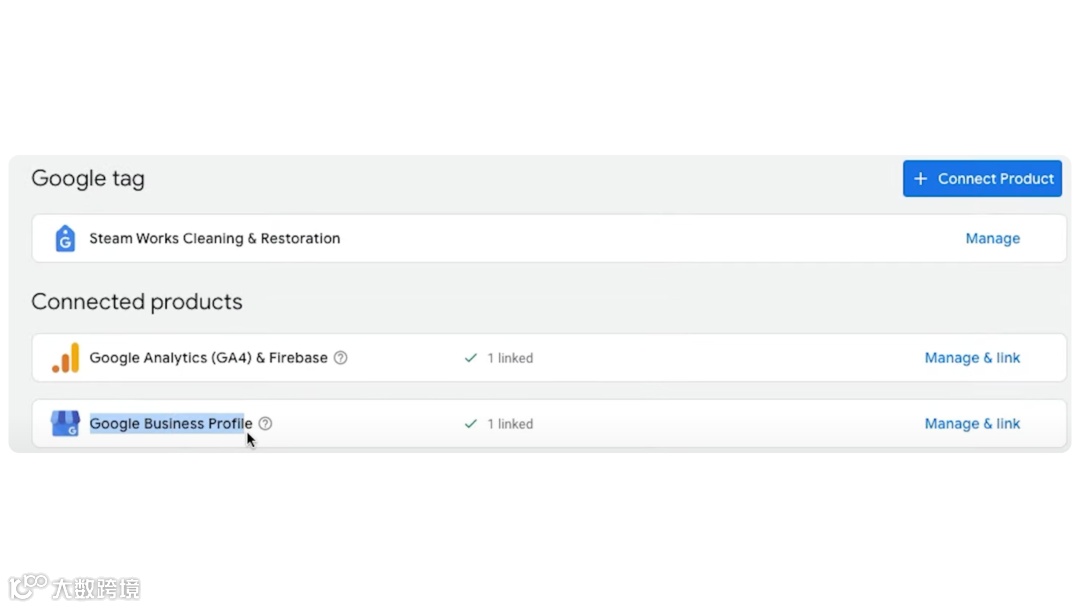 关联 Google 商家资料 – 按照提示关联 Google 商家资料账户。