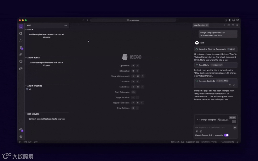 这就是 Kiro 的定位——它不仅仅是一个智能代码编辑器,更是一个全栈开发学科的操作系统。