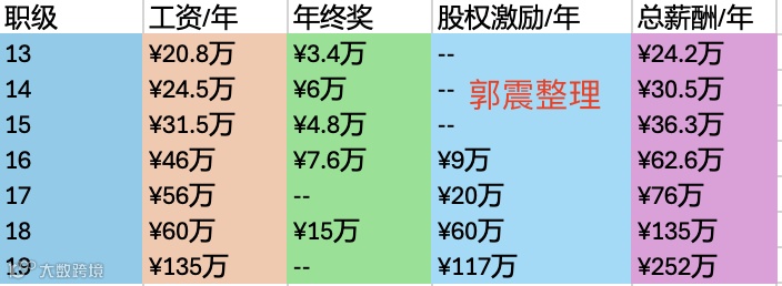 - 13级:Base 20.8万元,年终奖3.4万元,合计年薪约24.2万元;