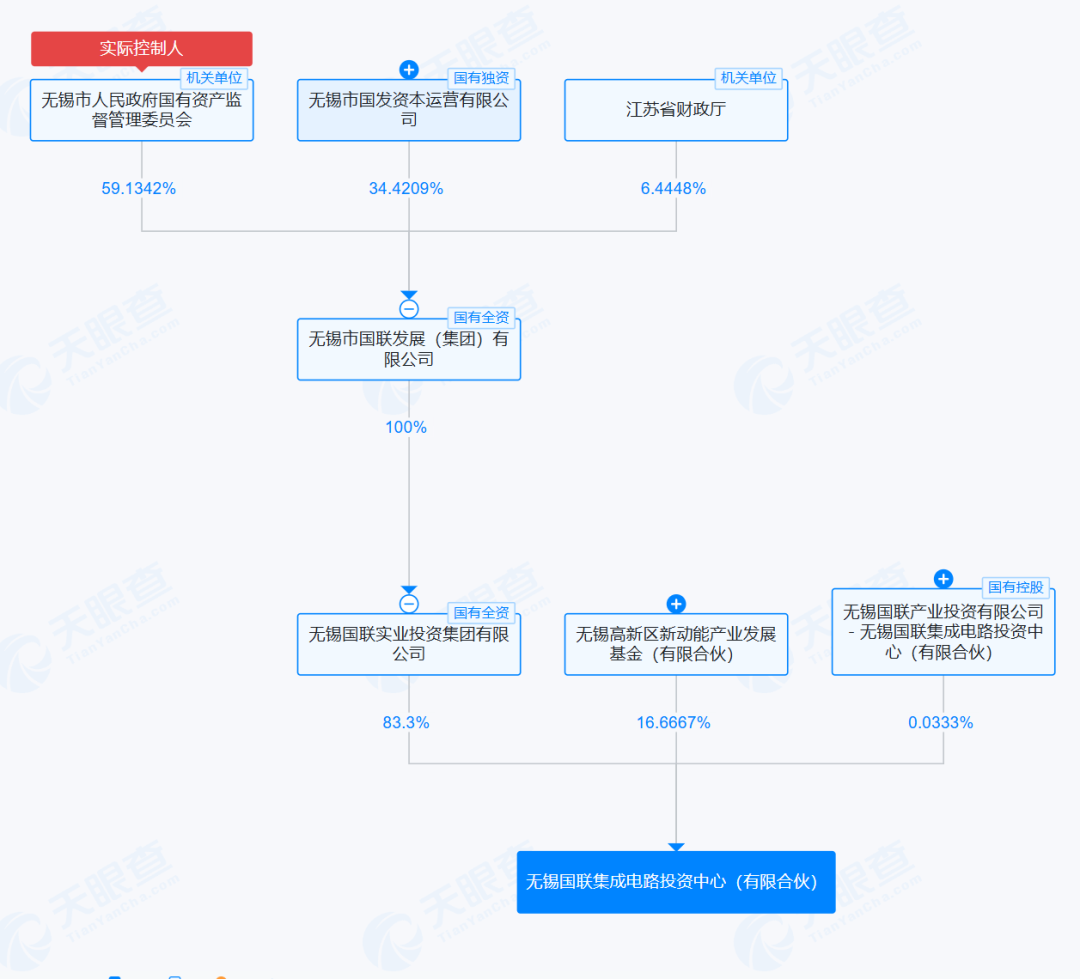 天眼查资料显示,无锡国联集成电路投资中心有国资背景,其实控人为无锡市国资委。