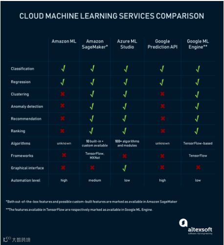 Azure ML Studio功能最为全面;若涉及深度神经网络任务,建议同时评估Amazon SageMaker与Google ML Engine[k]。