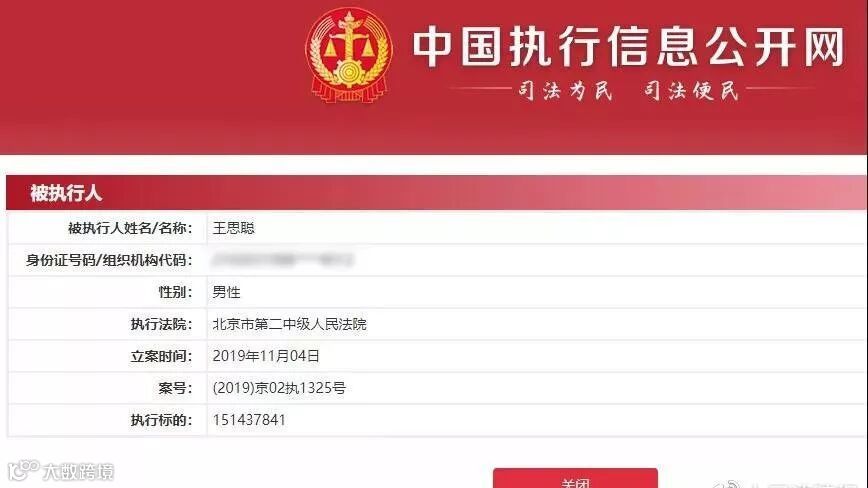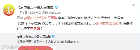 备受关注的王思聪在北京涉及的被执行案件又有新进展。