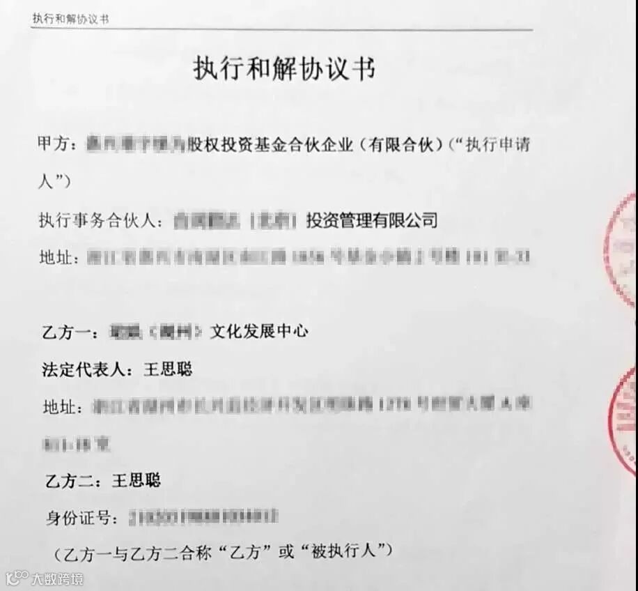 12月24日,据北京二中院官方微信消息,某股权投资基金合伙企业(有限合伙)申请执行某文化发展中心、王思聪仲裁纠纷一案已在北京二中院和解解决,申请执行人已于2019年12月23日向二中院提交解除查封、冻结、限制消费措施的申请,二中院将对该案作结案处理,并陆续解除对被执行人王思聪采取的执行措施。