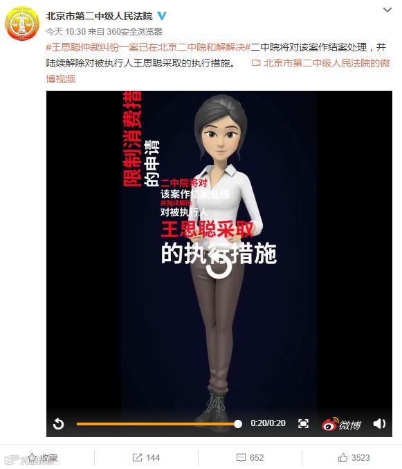 12月24日,北京市第二中级人民法院(下称北京二中院)发布消息,王思聪仲裁纠纷一案已在北京二中院和解解决,二中院将对该案作结案处理,并陆续解除对被执行人王思聪采取的执行措施。