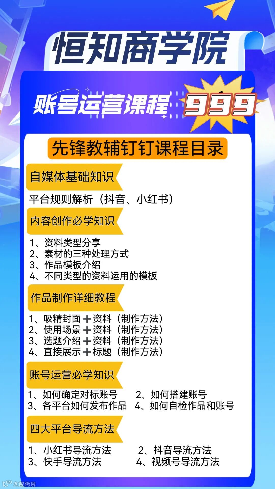 课程学习:【恒知商学院】(私域运营课程、账号运营课程等)
