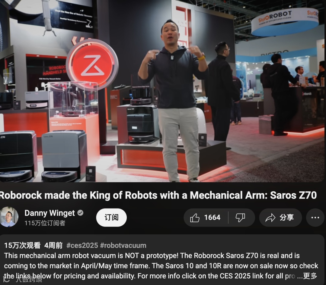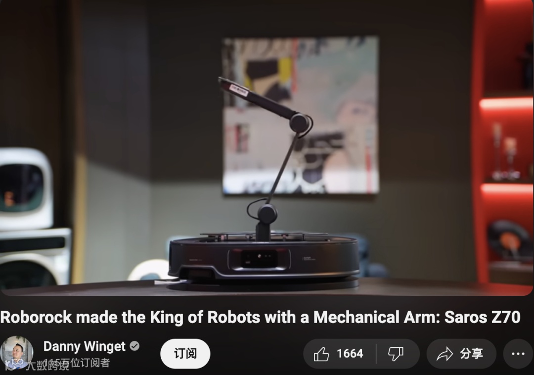 在这条视频中,Danny记录了自己前往科技展会的Vlog,顺便引出了Roborock推出了新款机器人吸尘器Saros Z70,配备机械手臂,可以自动拾取地面物品。