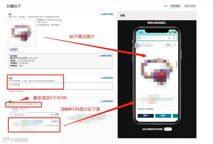 6.添加最多 5 个您的品牌拥有或获准销售的 ASIN。如果 ASIN 缺货或商品详情页上没有图片,则不会显示您的帖子;