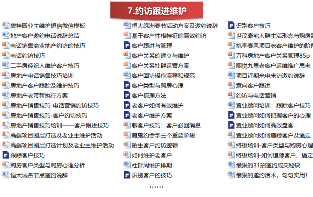 |地产销售技巧|说辞逼定技巧|约访跟进维护技巧|新媒体朋友圈获客|营销总操盘|营销策划|渠道拓客技巧|短视频直播运营|商业地产营销|房地产知识|话术答客问技巧|