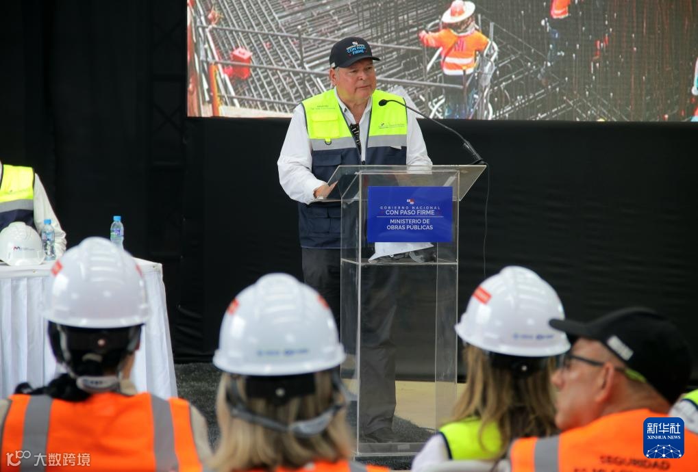 ▲ 11月1日,在巴拿马首都巴拿马城,巴拿马公共工程部长何塞·路易斯·安德拉德在巴拿马运河第四大桥东主塔承台首层混凝土浇筑仪式上致辞。新华社发(巴拿马公共工程部供图)