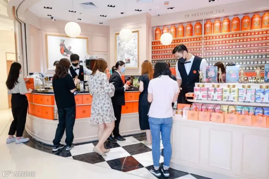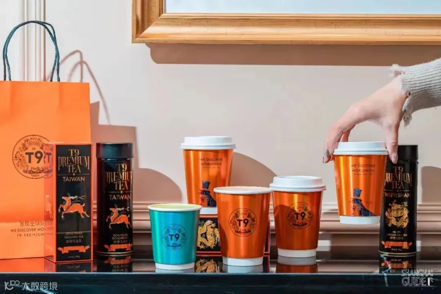 T9视门店为品牌资产核心,强调从产品到空间的完整呈现[k]。门店设计融合中西文化,主色调为橙红色,灵感源自爱马仕橙,墙面陈列茶叶罐,服务人员着黑白制服,营造优雅社交氛围,被消费者称为“茶饮界的爱马仕”[k]。
