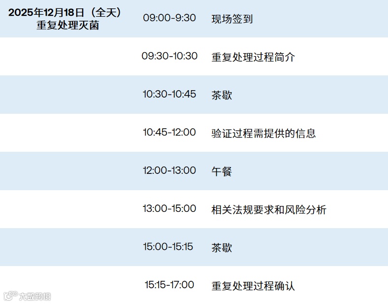我们诚挚地邀请您参加于2025年12月18日至19日由TÜV南德意志集团医疗健康服务部门在北京举办的医疗器械重复处理、湿热灭菌培训专题讲座。