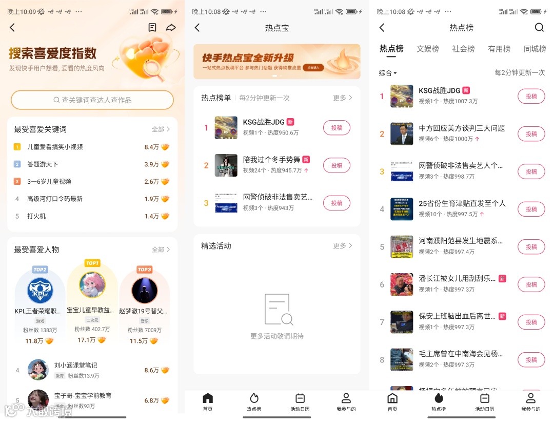 3. 点击 【热点宝】,就可以看到快手所有热门的 【细分话题】。 -