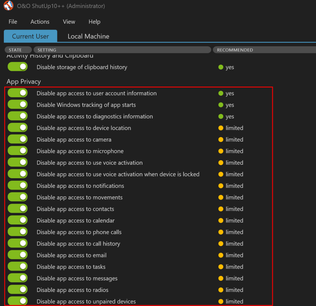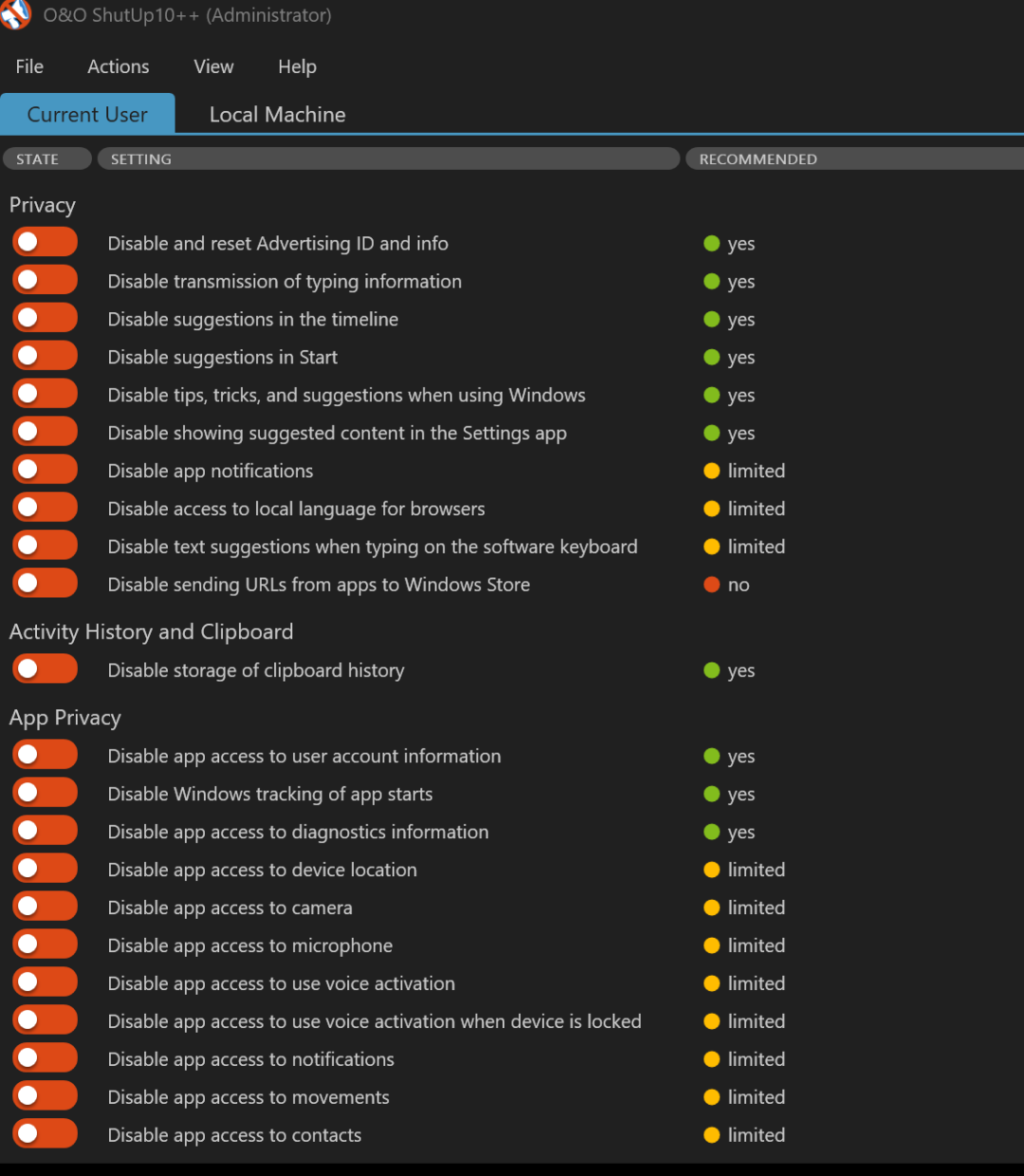 O&O ShutUp10++ 让您可以通过简单的推荐切换来控制 Windows 隐私设置、保护个人数据并减少跟踪。