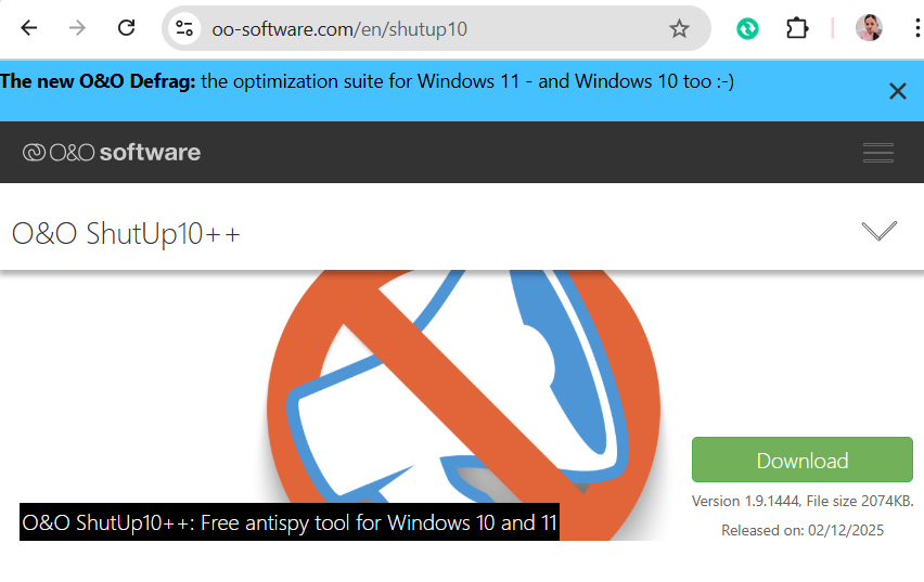 首先,您可以从上面的链接下载 O&O ShutUp10++
