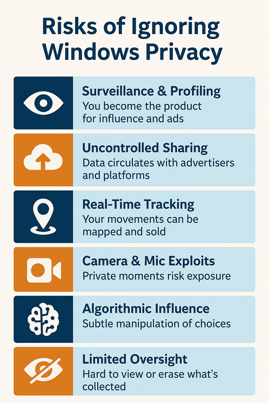 忽视 Windows 隐私设置可能会使您面临严重风险 - 不仅会影响您的设备,还会影响您的安全、财务和个人自由。