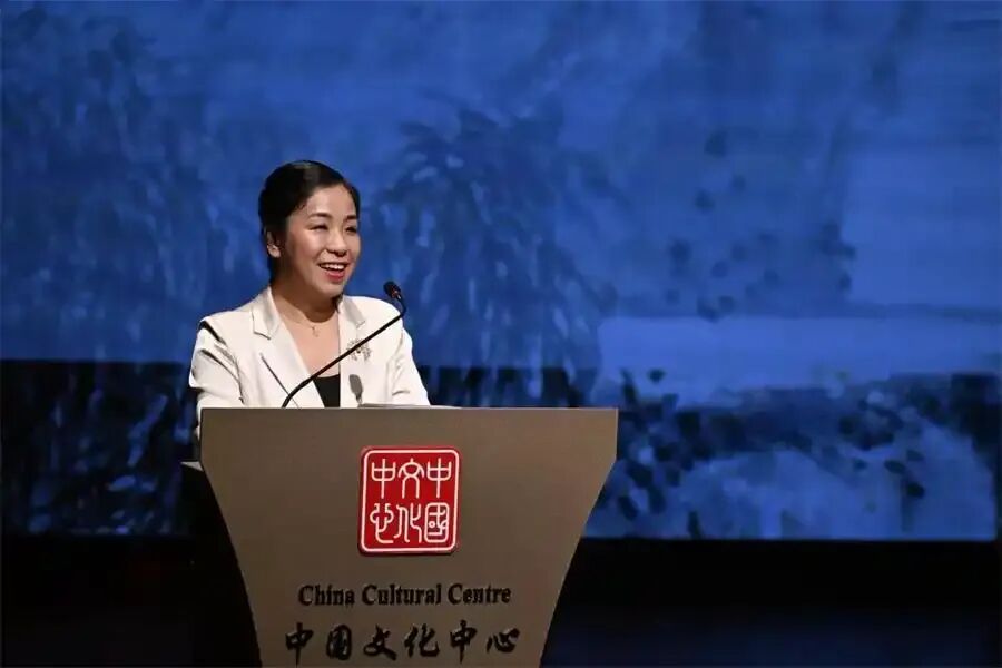 新加坡中国文化中心兼旅游办事处主任孔媛在特展现场致辞。新加坡中国文化中心供图