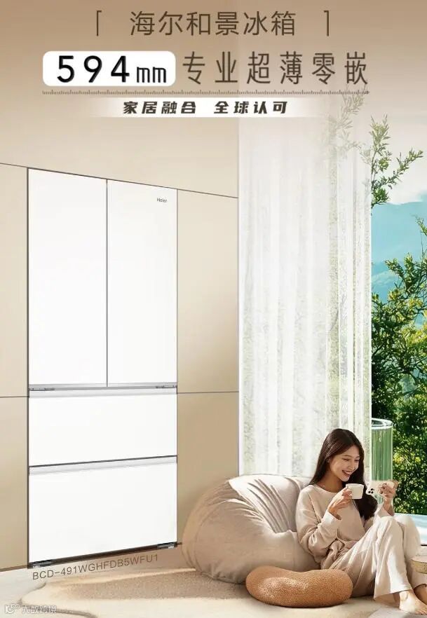 海尔(Haier)冰箱491L白色法式多门594MM超薄零距离嵌入式一级变频风冷干湿分储家用大容量BCD-491WGHFDB5WFU1