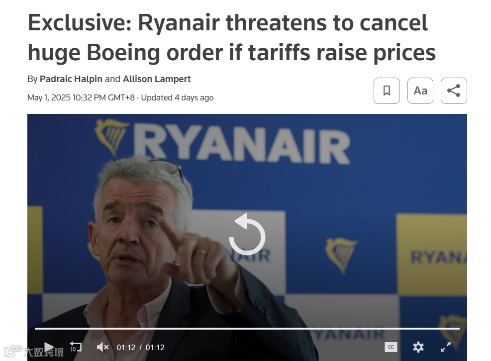 此次取消订单的威胁标志着奥利里立场明显强硬化。他4月曾威胁推迟接收飞机,3月还表示波音高管私下透露飞机可能获得关税豁免。航空业消息人士称,波音和空客的合同均未包含关税条款,因该行业数十年来从未涉及关税问题。关税仅在飞机所有权转移至航司、合同履行完毕后才需缴纳。