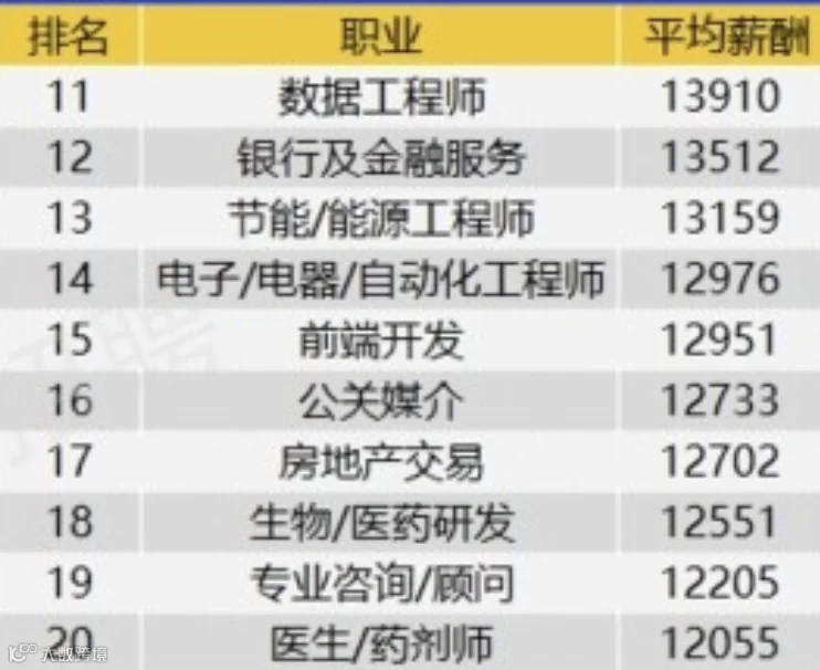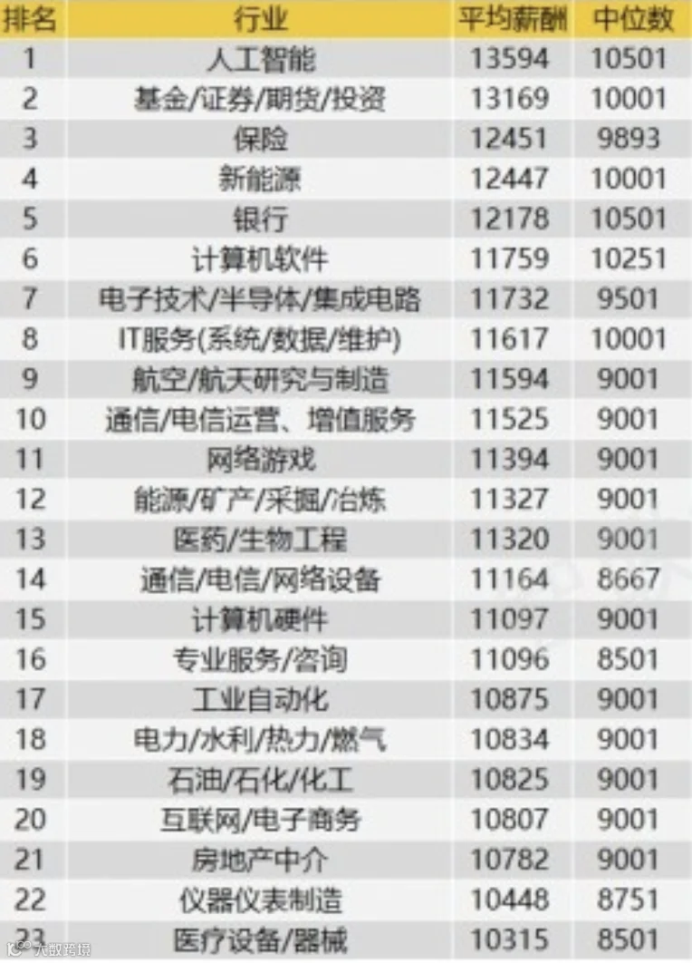 基金、保险、银行位列第二至第五,属金融高薪领域;新能源排名第四,发展潜力突出。第六至第十中多个为IT相关行业,显示其持续高需求[k]。