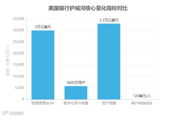 综上,美国银行通过无形资产筑牢品牌认知、规模效应降低运营成本、网络效应提升用户粘性,形成动态强化的护城河体系,尤其在财富管理领域的差异化布局,使其在与摩根大通等同行竞争中保持独特优势。