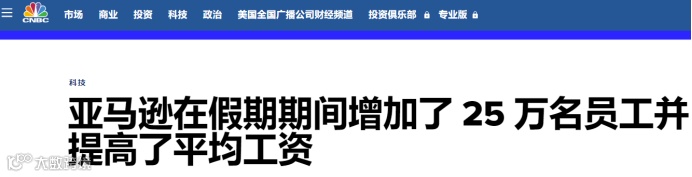 现今,CNBC报道称,亚马逊将在假期期间增加25万名员工并提高平均工资!